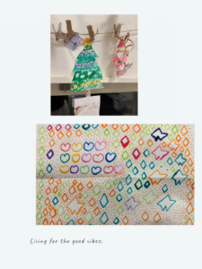 Tさんは 素敵なクリスマスツリーやトナカイ、サンタさんの絵をカットしてくれた飾り!